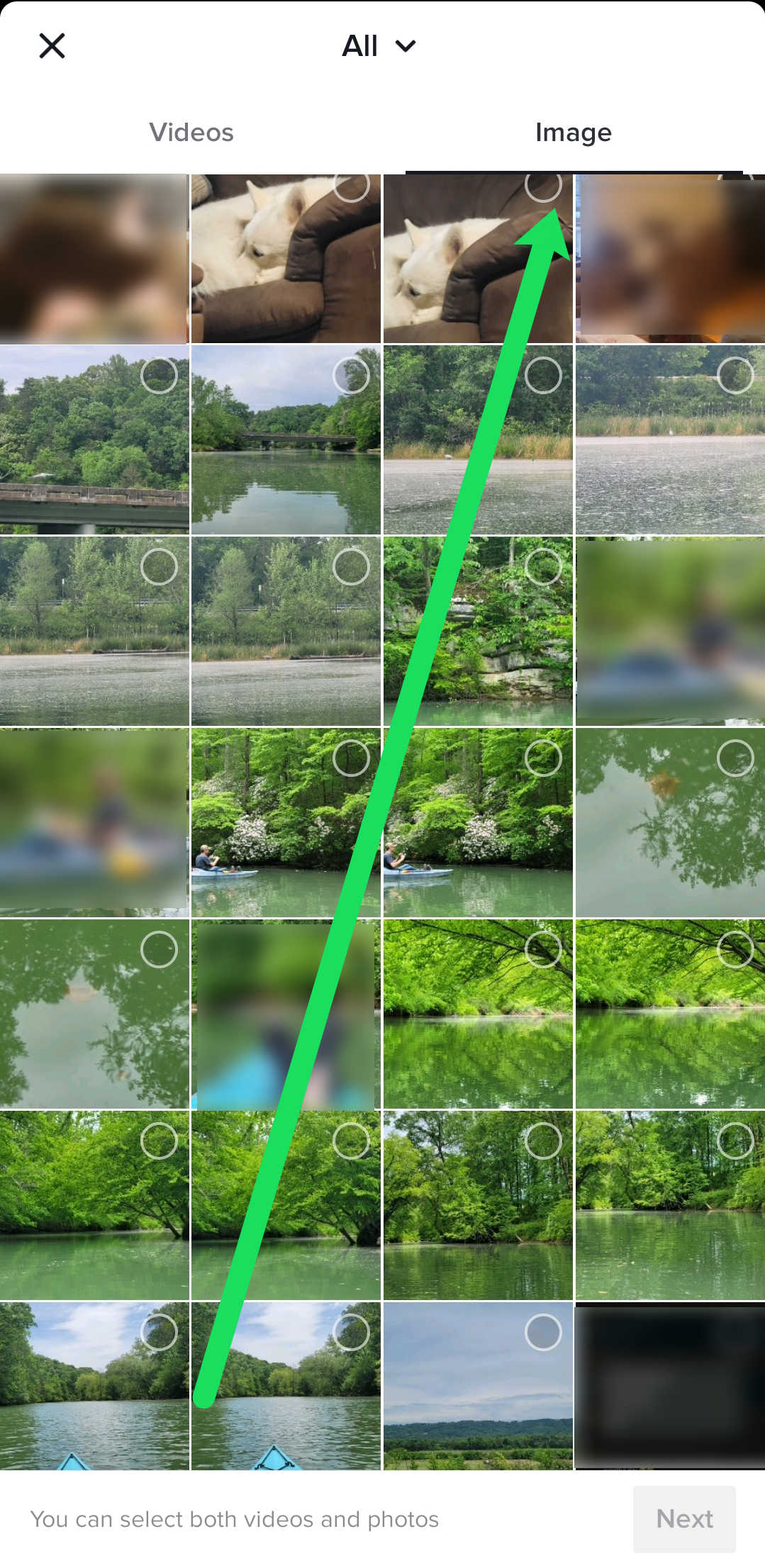 - Choose the photos you want to add, then tap on the Slideshow button to create a TikTok slideshow. Just tap on each desired photo in the order you want them to appear in the video.