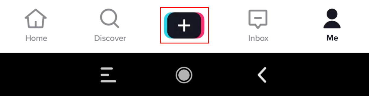 - Tap on the + icon at the bottom of the home screen to create a new TikTok.