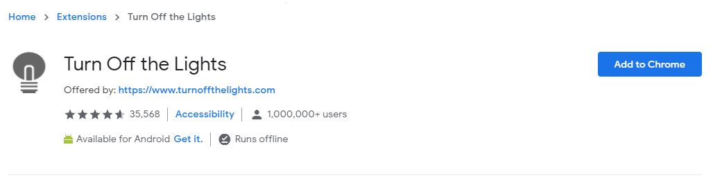 - Right-click the Turn Off the Lights extension icon in your browser.
