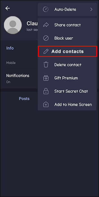 Alternatively, if you share the same group or channel with the person, you can view their contact as follows: