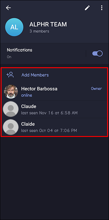 - Open your Telegram app and select the group you share with the person whose contact you want to view.