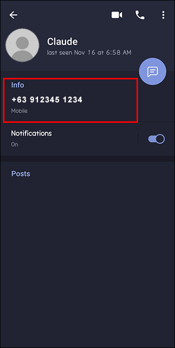 - Go to the “Info” section and find their phone number there.