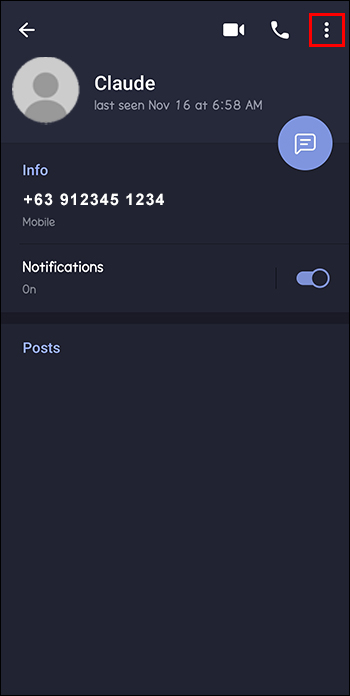 If you try to view someone’s contact using the above method and find no phone number in their profile info section, it means they’ve hidden it. However, you can confirm if they have hidden their phone number using this method: