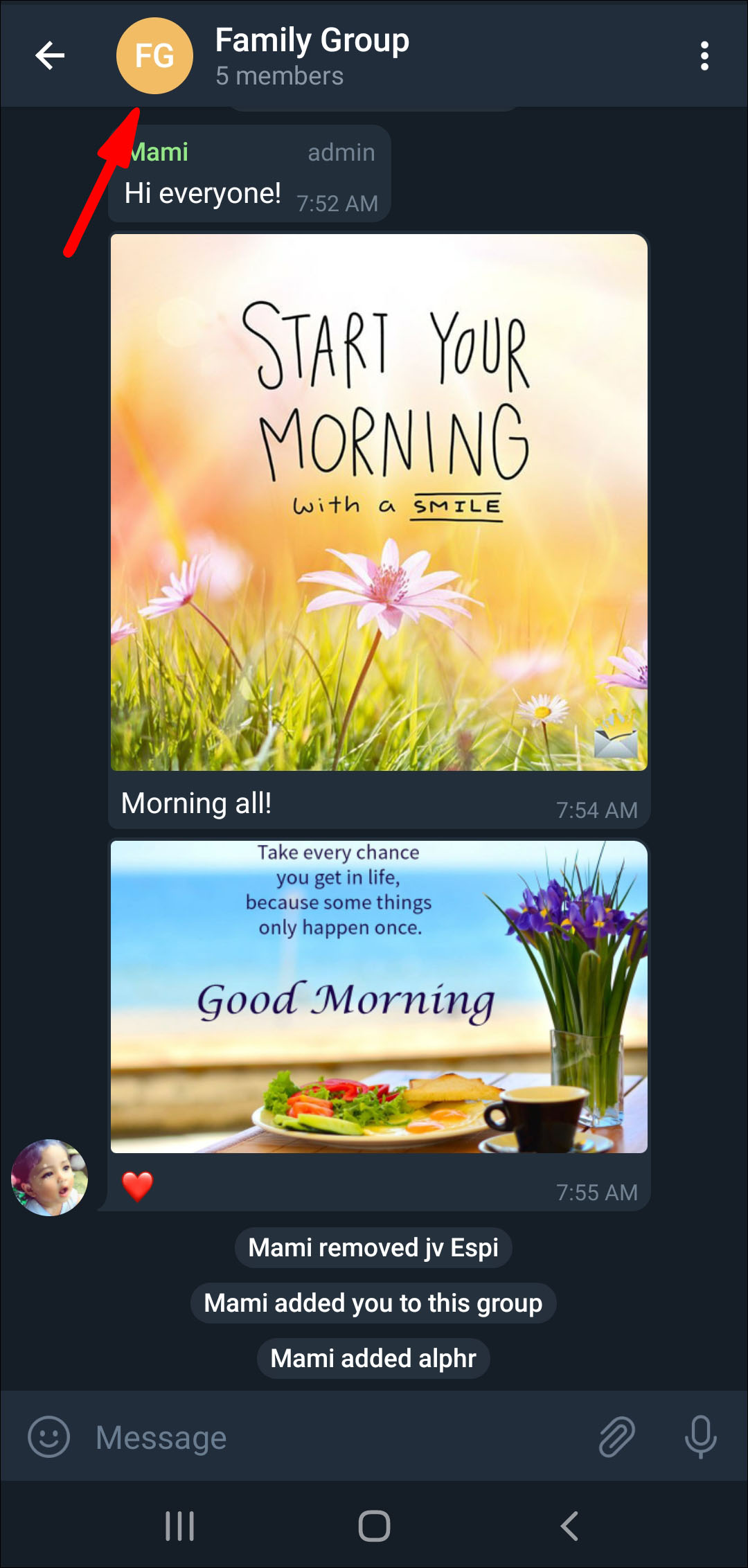 - Tap on the group’s profile picture in the top-right corner of your screen.