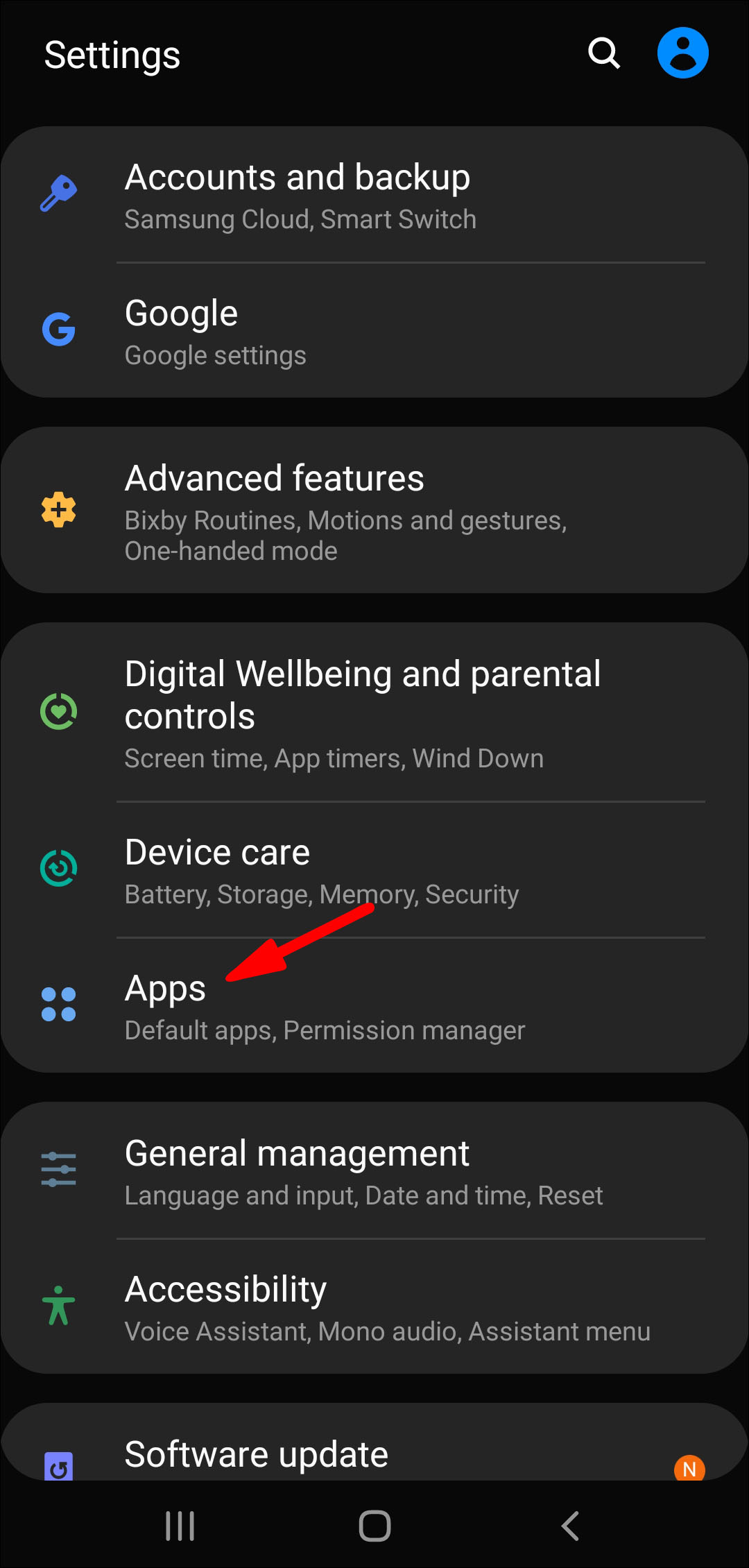 2. Find Apps on the menu.