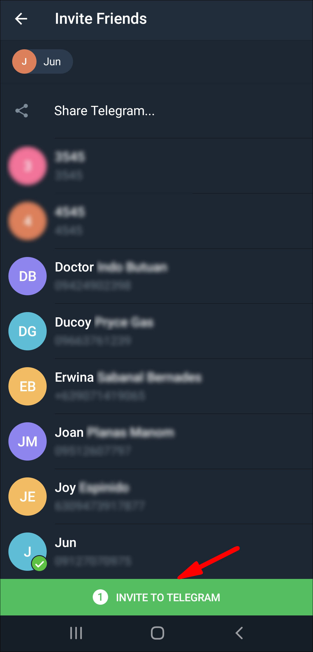 - Tap on the contact you want to add from the list of Telegram members.