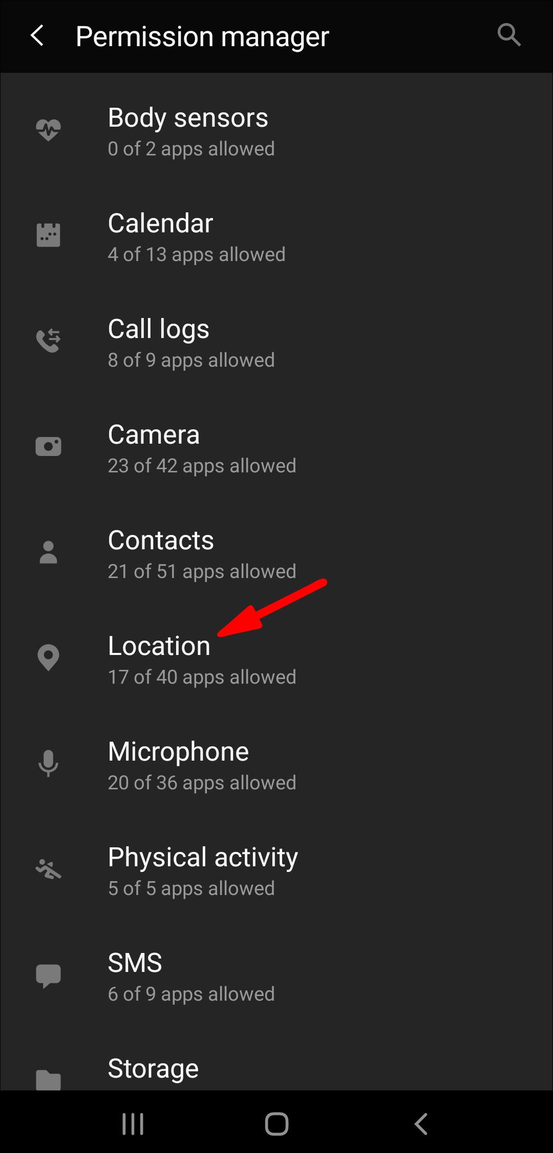 3. Go to Permissions and then to Location.
