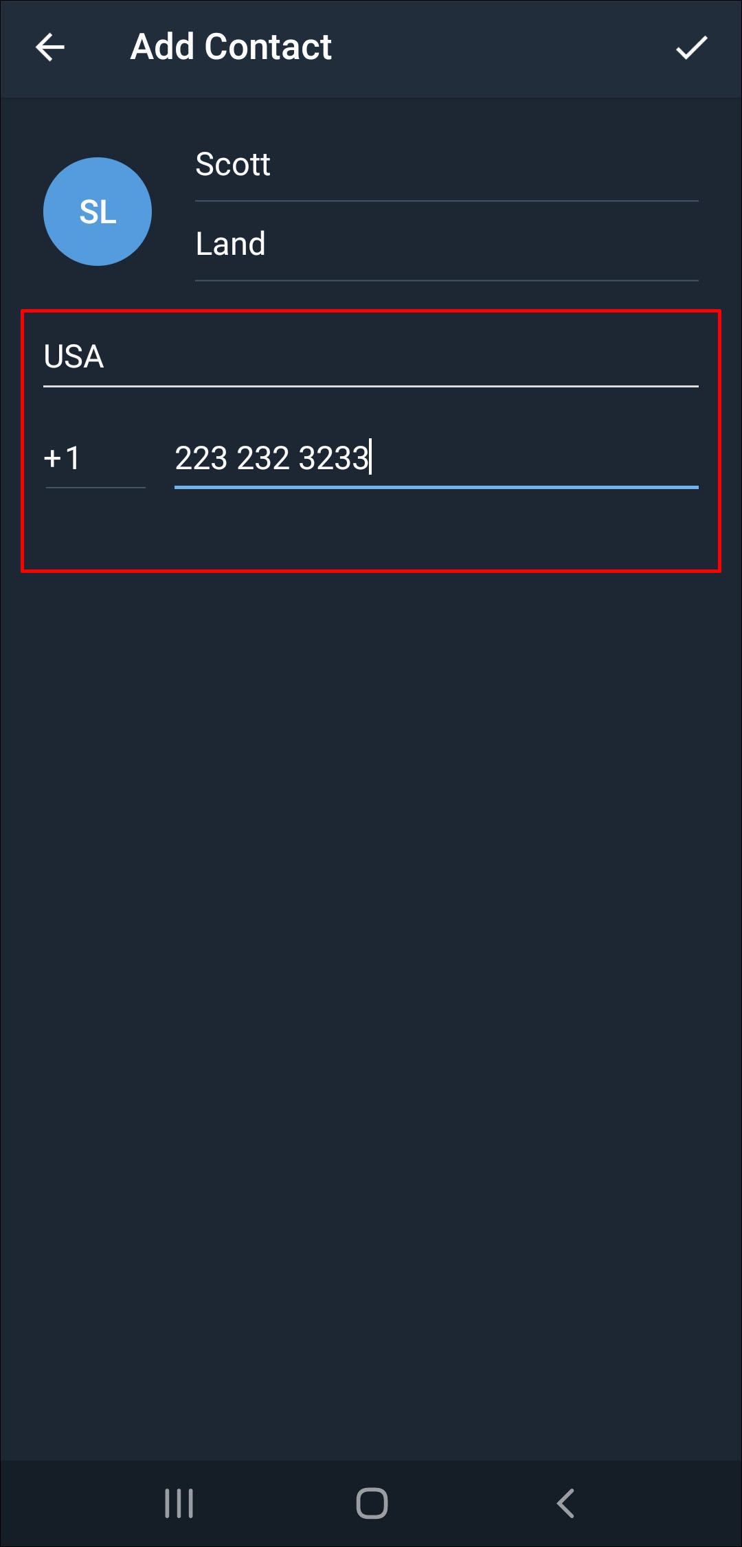 - Type in the contact’s name and phone number in the fields.