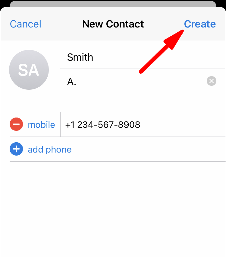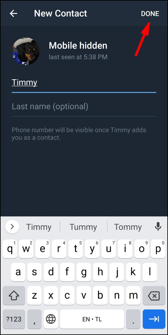 - Add a contact name and tap on Done.
