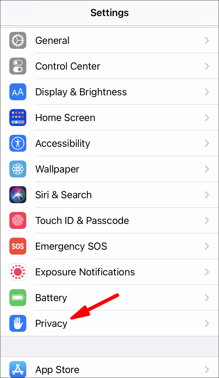 2. Find Privacy on the list of options and tap on it.