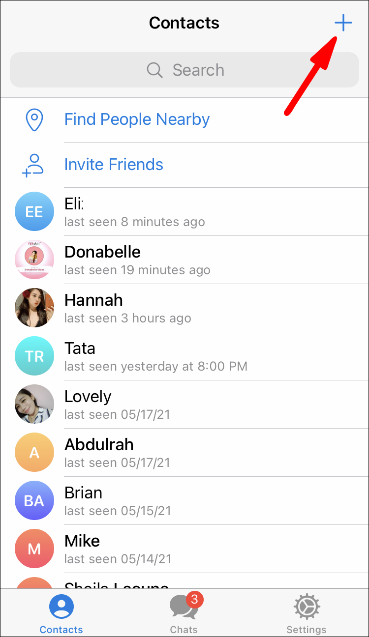 To add contacts on Telegram on an iPhone device, follow the instructions below: