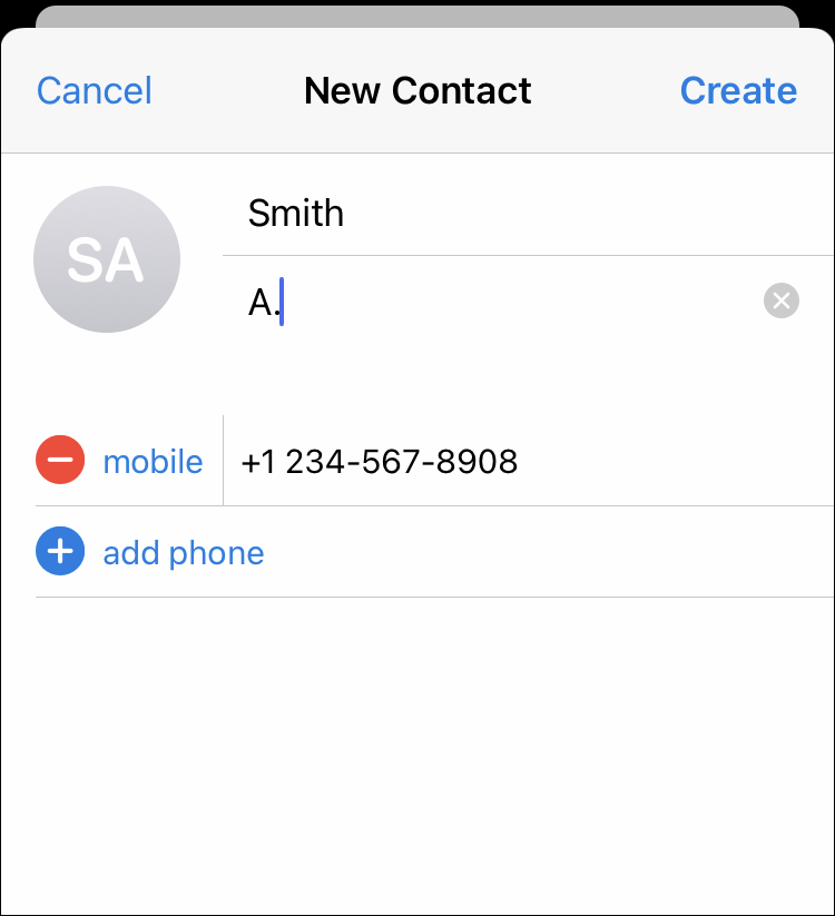 - Write the name and phone number of your new contact.
