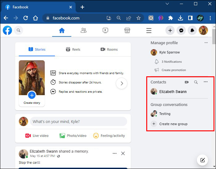 - Click the “messenger” icon at the top of the screen will appear. Here you can see all the people who are active by the green dot next to their icon.