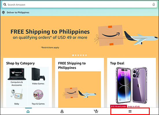 - Launch the Amazon app on your iPhone and log in if necessary.