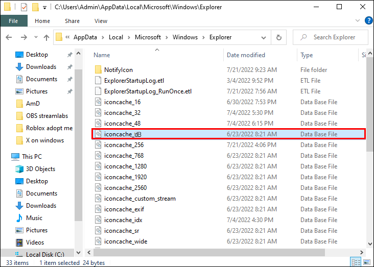 The icon cache is a database file where Windows stores pictures of the icon. The OS will use this cache file whenever the icon is needed because it is faster to draw from the cache than the original application file. If this cache becomes corrupted, you may start seeing X’s on your icons, so you should delete the cache.