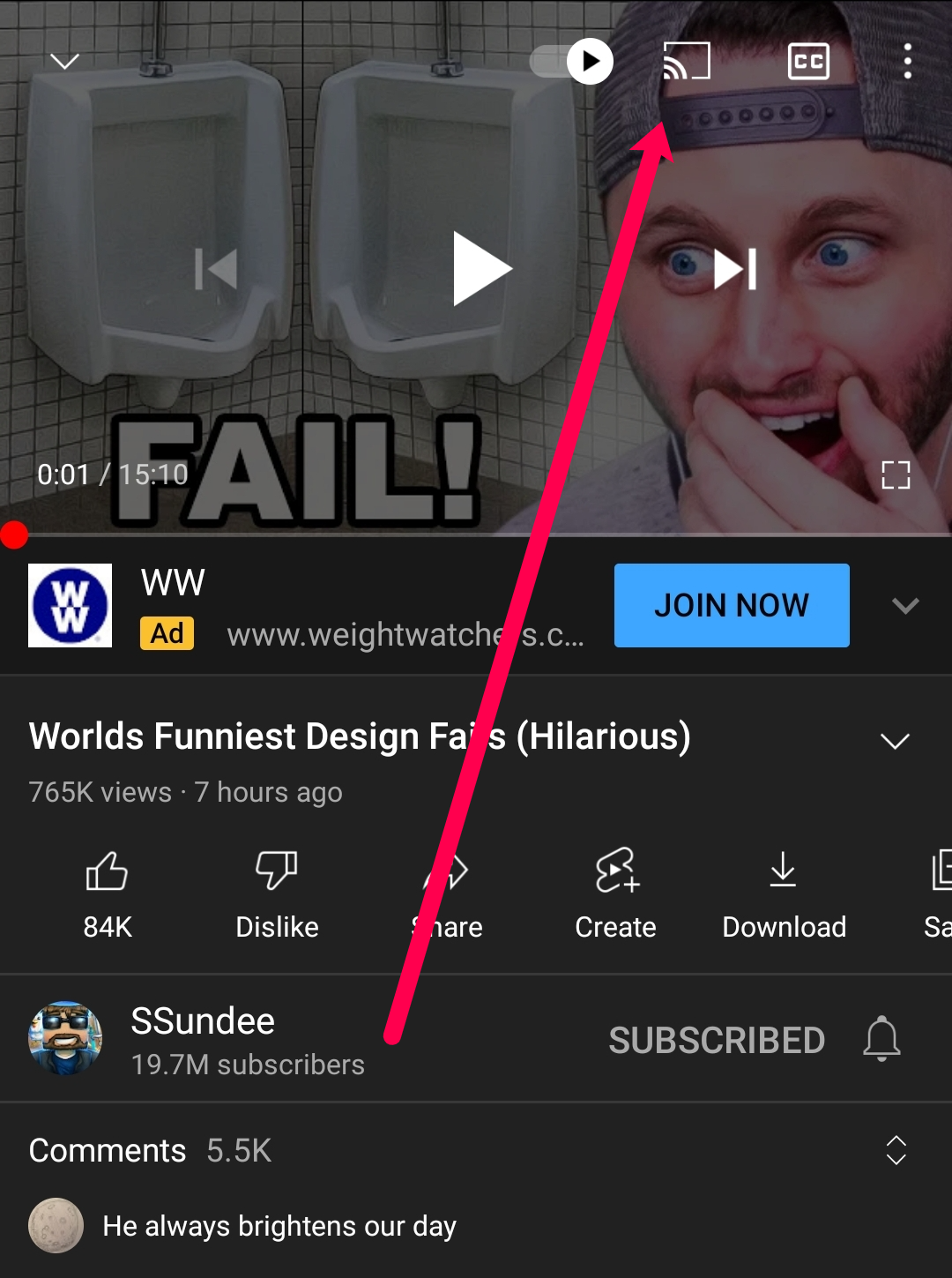 We’re using YouTube as an example of how to cast from an Android app to a Roku device. Here’s what to do: