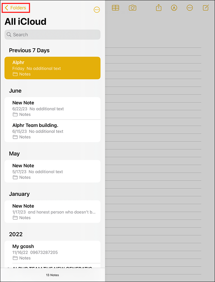 - Go into your “Notes” app and click on the back button, which should take you to the “Folders” menu.