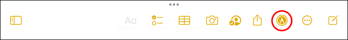 - At the top of your note screen, click on the “Pen” icon, which opens Markup. You’ll see two arrow icons at the top.