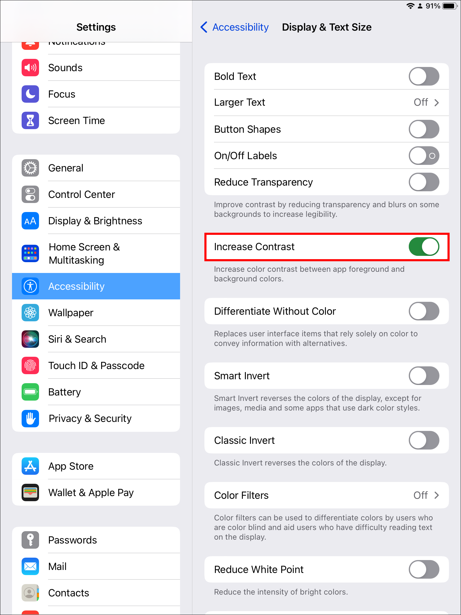 - Choose the “Increase Contrast” option to enhance the color intensity between the background and the foreground.