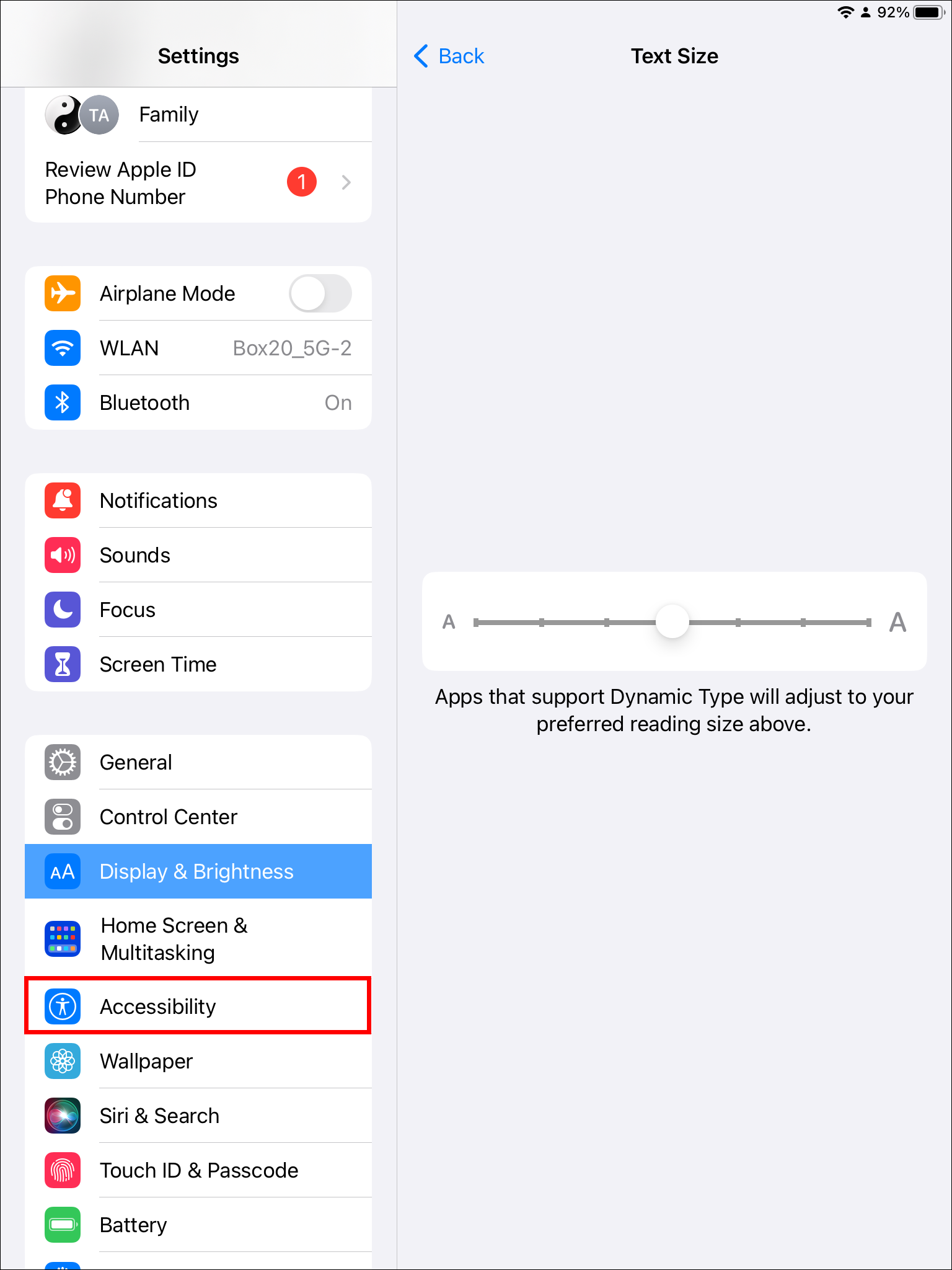- Choose “Larger Text,” then utilize the slider to adjust the text size larger or smaller.