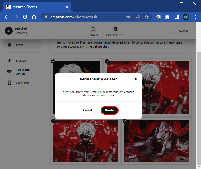 - Select “Amazon photos” to remove the photos from your Amazon Photos account only.