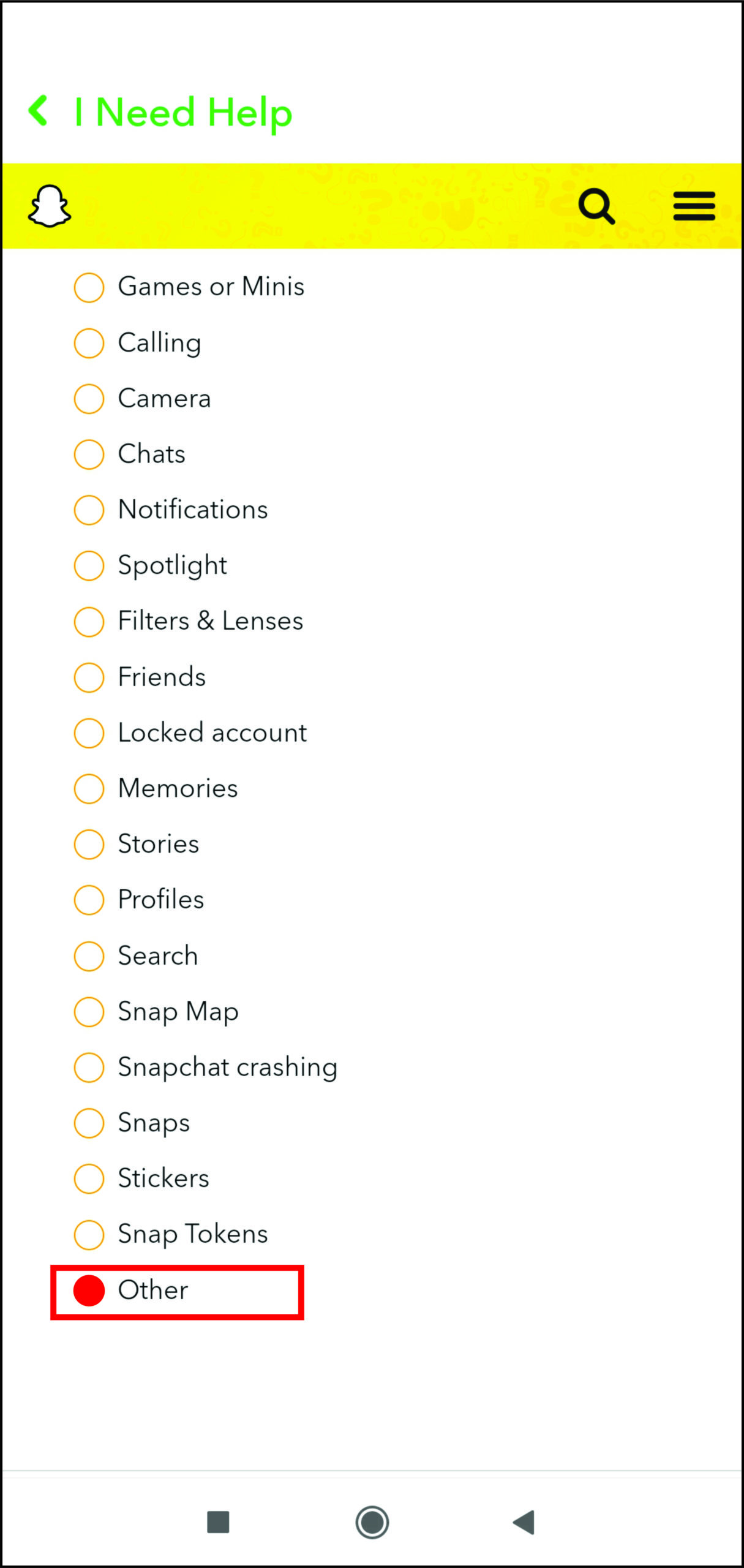 - Now, under various options, choose My Snapchat isn’t working.