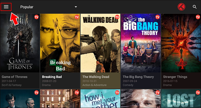 You’ll also find a three-line hamburger menu on the left-hand side of the screen. Selecting this will allow you access to additional options such as categories, favorites, settings, and your viewing history.