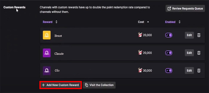 It’s time to manage your rewards. Managing your tips involves creating custom rewards and activities for your viewers. Note that you don’t have to come up with a reward for everything, as there are default rewards that Twitch has already set up. But you’ll have to create some custom ones, too. Let’s look at the default rewards and then move on to setting up the fun and exciting custom rewards.
