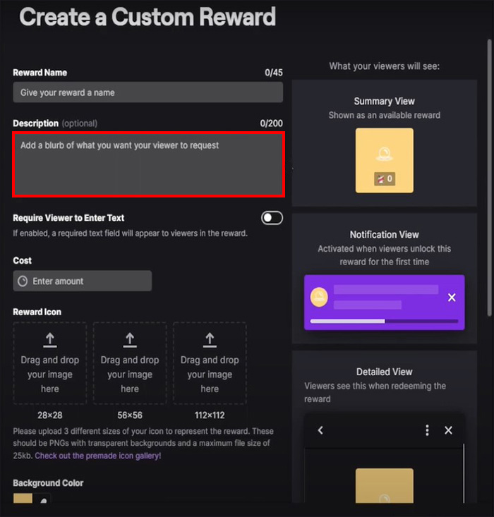 Custom rewards require you to consider what rewards to give your viewers. Some reward ideas include inviting a viewer to the game with you, letting a viewer choose the map you play, giving a shoutout to someone, dancing, or doing something funny. Once you’ve got your list of unique, creative ideas, you’re ready to add them. How to do this is simple: