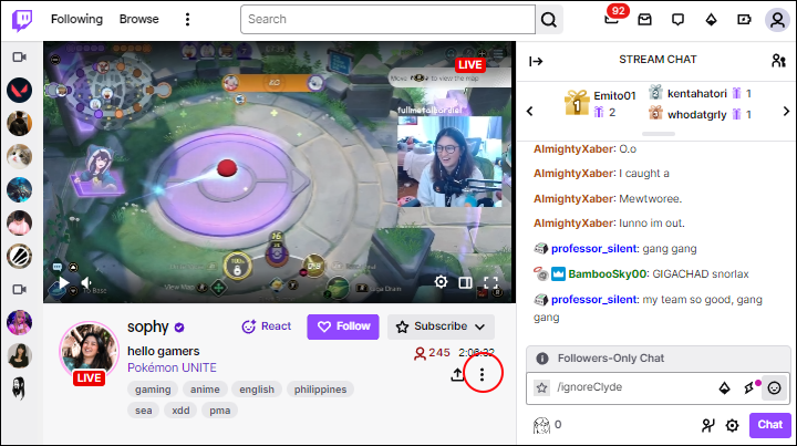 - Open any stream on Twitch.