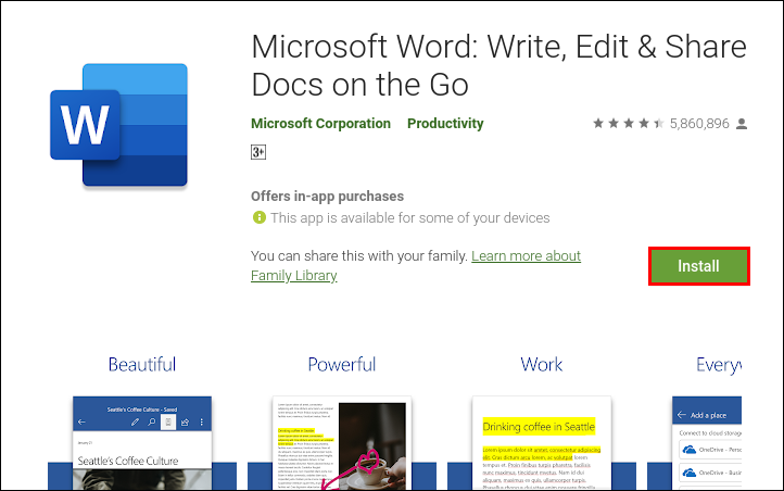 1. Go to the Google Play Store and type “Microsoft Word” into the search bar at the top of the screen.