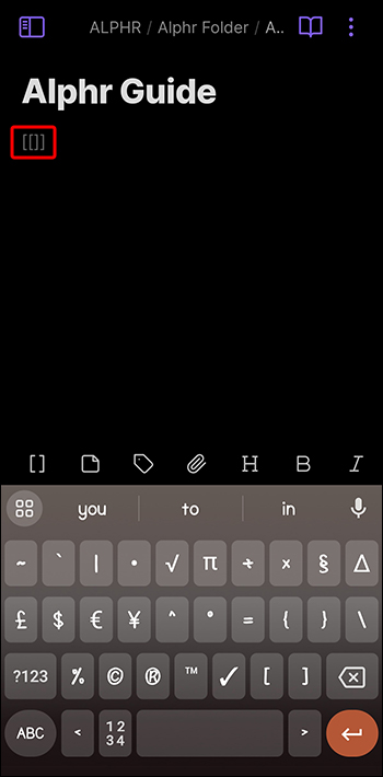 - Click on the “[]” above your keyboard or start typing “[[”.