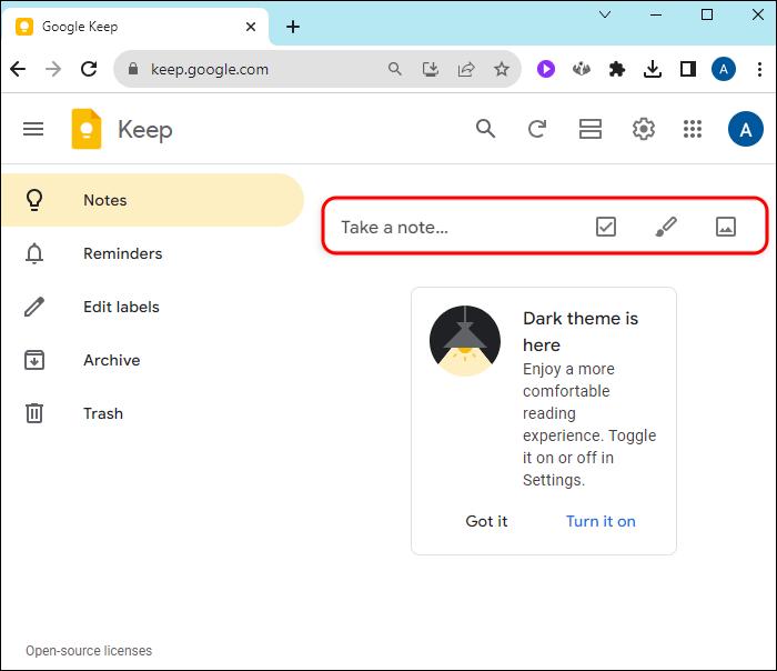 - On the home page, tap “Take a note” at the top to make a new note. Type the content of your note.