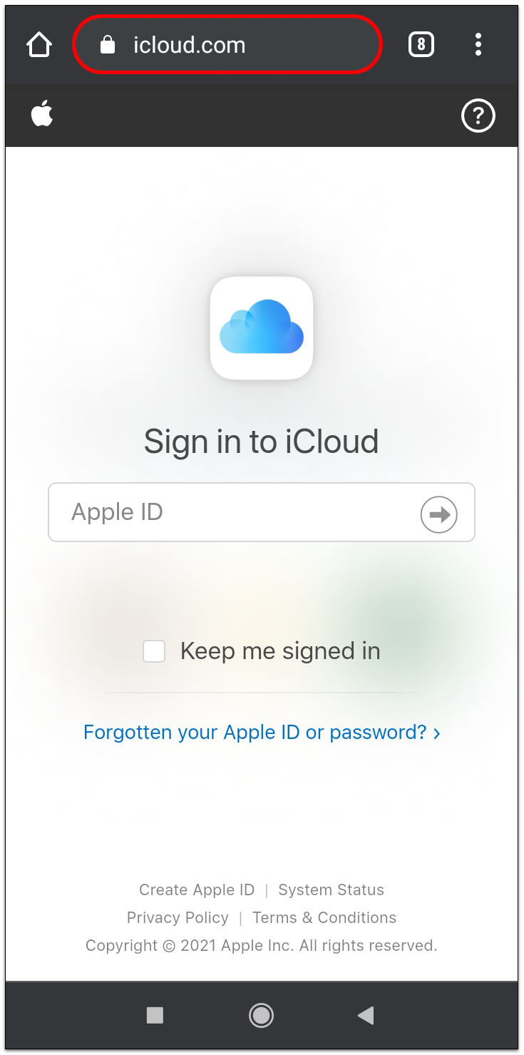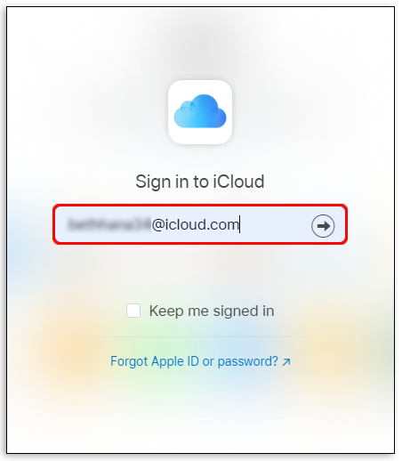 - Launch a browser, navigate to the “iCloud website,” then enter your “Apple ID.”