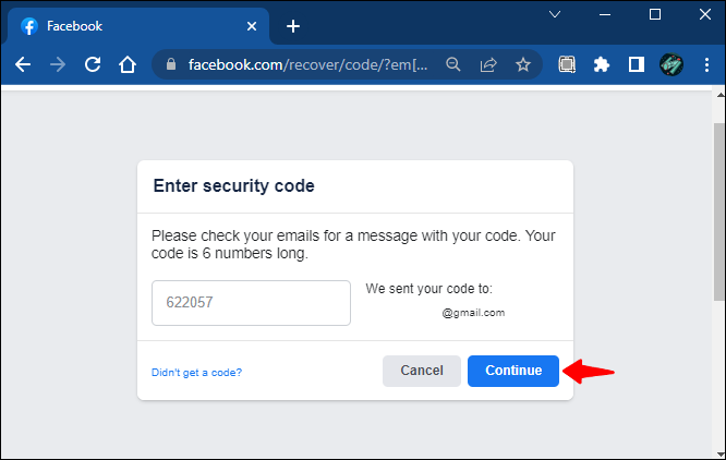 - You will receive the code to your email or phone number. Enter the code and click Continue.