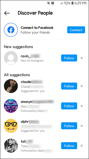 - Tap Discover People and then the Connect button next to Connect to Facebook.