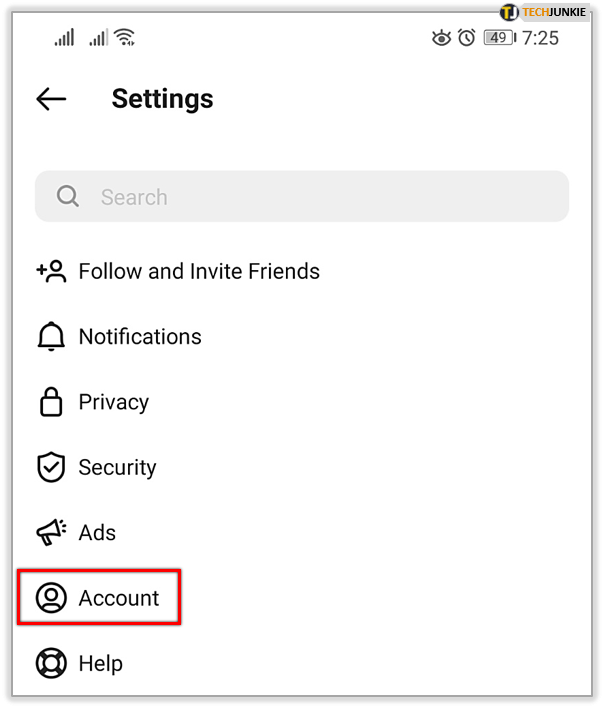 - Tap on Account.