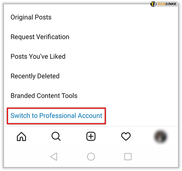 - Scroll to the bottom and select Switch to Professional Account.
