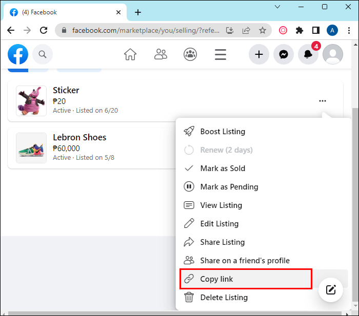 There are two ways to send a Marketplace listing from your computer to your mobile device. The first way is to save the post: