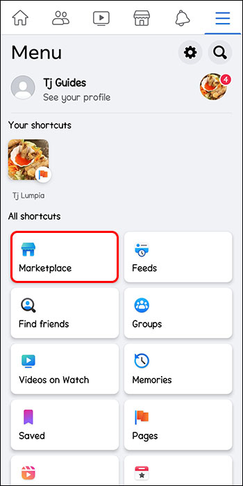Go to your profile icon, click the three-line menu on the bottom, and tap on the “Marketplace.”